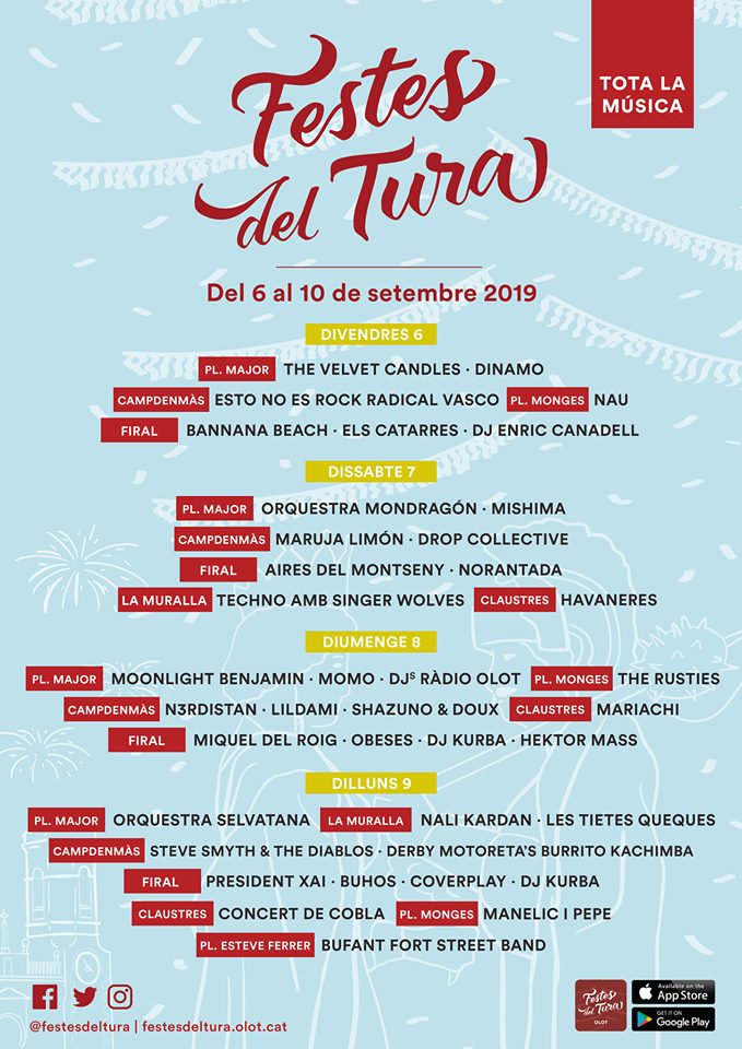 La fiestas de Tura, son las fiestas mayores de la localidad en honor a la patrona de la ciudad de Olot, la Virgen de Tura. Dentro del marco de la programación de las fiestas destaca el baile de gigantes, enanos y caballitos en la Plaza Mayor de la villa. Este ritual tiene lugar todos los años el 8 de septiembre.